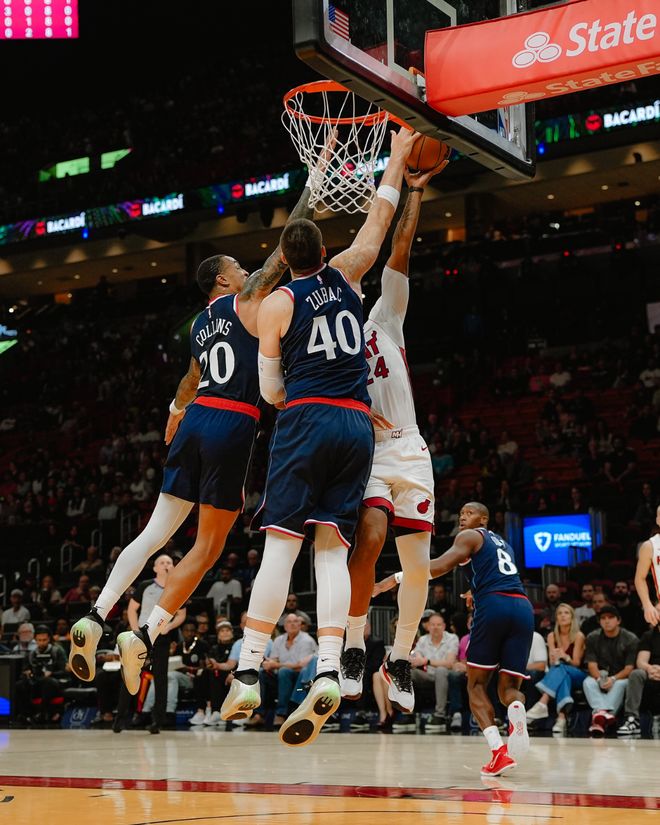 热火队的鲍威尔得到30分,阿德巴约得到27分、14个篮板和3次助攻,希罗得到22分,维金斯得到22分和9个篮板,米切尔得到16分和12次助攻。快船队的莱纳德得到36分和7个篮板,祖巴茨得到16分和13个篮板,邓恩得到12分、4个篮板和5次助攻,哈登得到11分和3次助攻,科林斯得到10分和6个篮板。